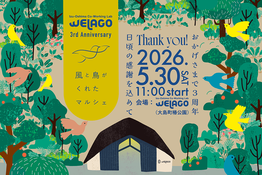 おかげさまでWELAGOは3周年。今年も皆さまへの日頃の感謝を込めたマーケットイベント「風と鳥がくれたマルシェ」を2026年5月30日に開催いたします。どうぞお気軽にお立ち寄りください。