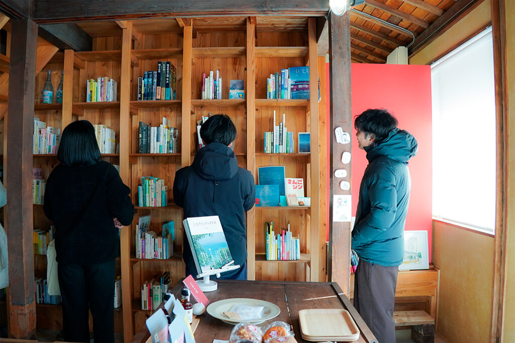 島の南部地域にあたる富江地区に建つ私設図書館「さんごさん」は様々な方から寄贈された“人生の3冊”が設置され、本を媒介にしたコミュニケーションが生まれる場になっている