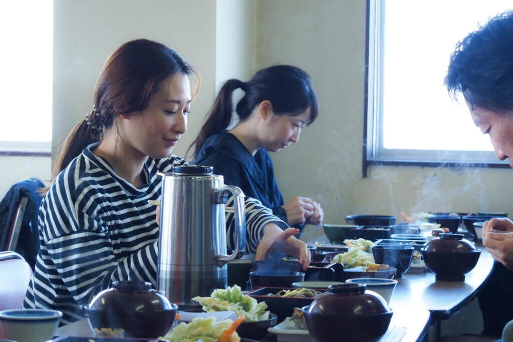 島の名物「明日葉」を使った蕎麦や天丼を味わいながら、これから始まる島での時間に期待が高まります。いよいよフィールドワークが本格的に始まります。