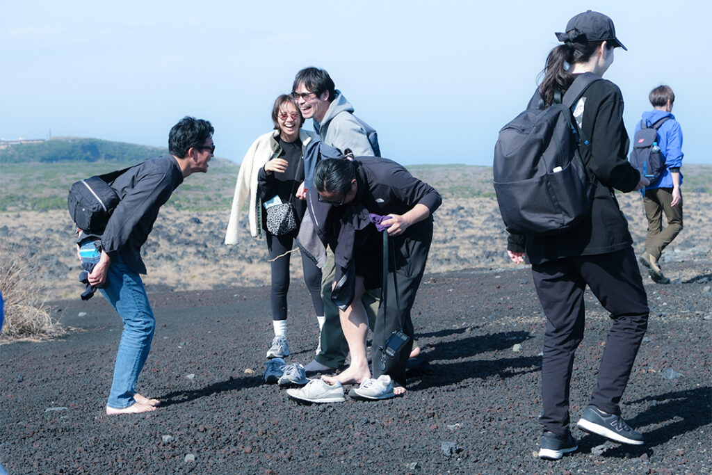 ゴツゴツとした溶岩の上に寝転ぶ人。靴を脱ぎ、足裏で大地の温度を感じる人。