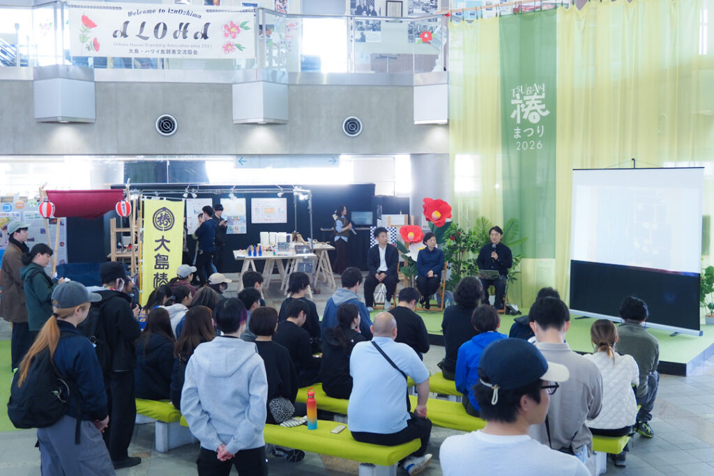 伊豆大島では、コワーキングスペース「Izu-Oshima Co-Working Lab WELAGO」を運営する株式会社フロンティアコンサルティングと武蔵野美術大学による共同研究の成果展示が行われており、この日から、椿まつり会場に特設展示ブースが設置されました。