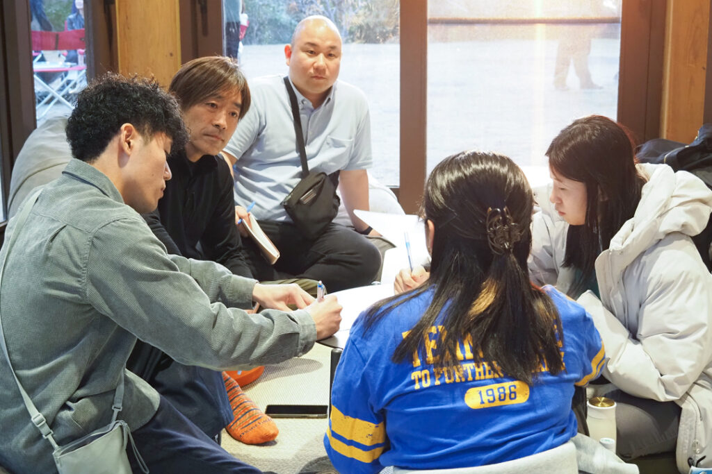 トレッキングで感じたこと。共同研究特設展示ブースやトークセッションから得た気づき。それぞれが持ち帰った感覚や意見を共有しながら、思考を深めていきます。