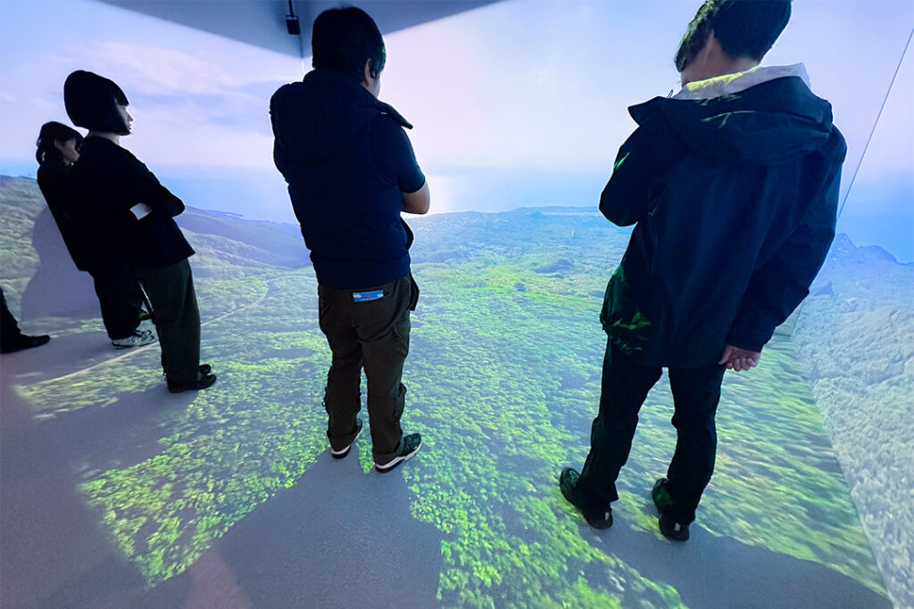 プロジェクションVRシアターの4面スクリーンに包まれる没入型の映像体験や、火山とともに生きてきた人々の暮らしを、丁寧に編集して伝える展示構成。