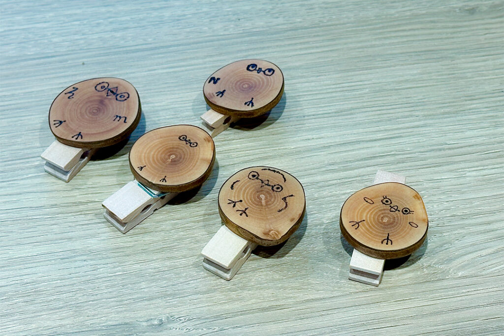 その後、「KARARA – 椿とあそぶアトリエ」の杉本さんによるウッドバーニングのワークショップを体験。椿の木を丁寧に磨き、電熱ペンで思い思いに線を刻んでいきます。